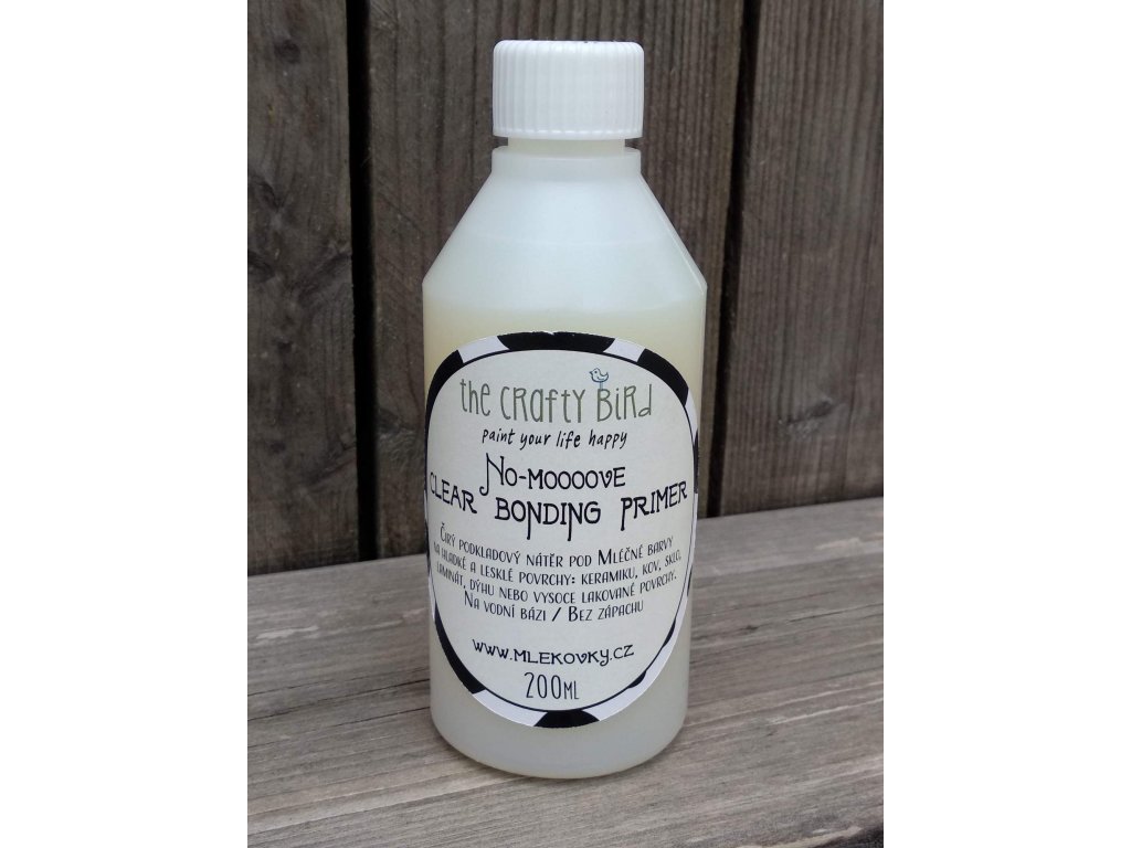 No-Moooove (doslovně - bez hnutííííí) je čirý podkladový nátěr, bez zápachu a rozpouštědel, který se nanáší na neporézne, lesklé plochy kde by normálně mléčné barvy nedržely. Tento podkladový nátěr je neuvěřitelně silný a přilne k hladkým povrchům jako je sklo, keramika, keramické dlaždice, dýhy, laminát, plast. Obsah balení 200 ml pokryje až 4 m2.