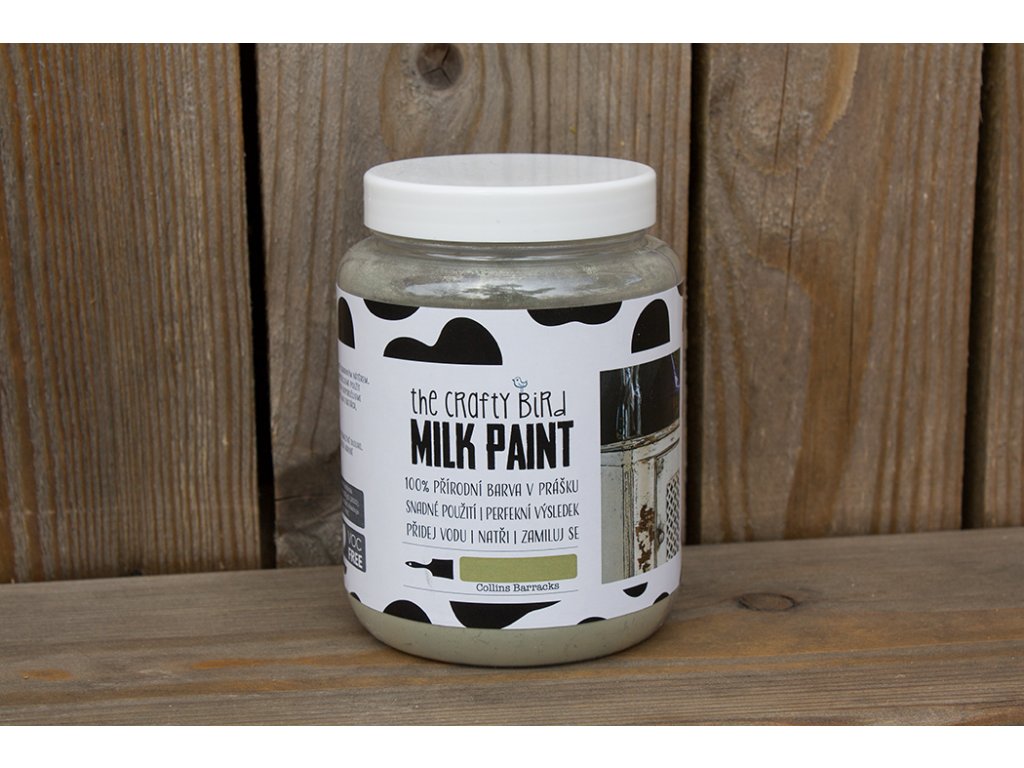 Mléčná barva je ekologická, prášková, vodou ředitelná barva na dřevo a další porézní povrchy. Ideální barva na syrové dřevo, ale taky na renovaci již natřeného dřeva s minimální námahou. Čistě přírodní složení: kasein (mléčná bílkovina), vápenec, jíl, křída, přírodní pigmenty.
