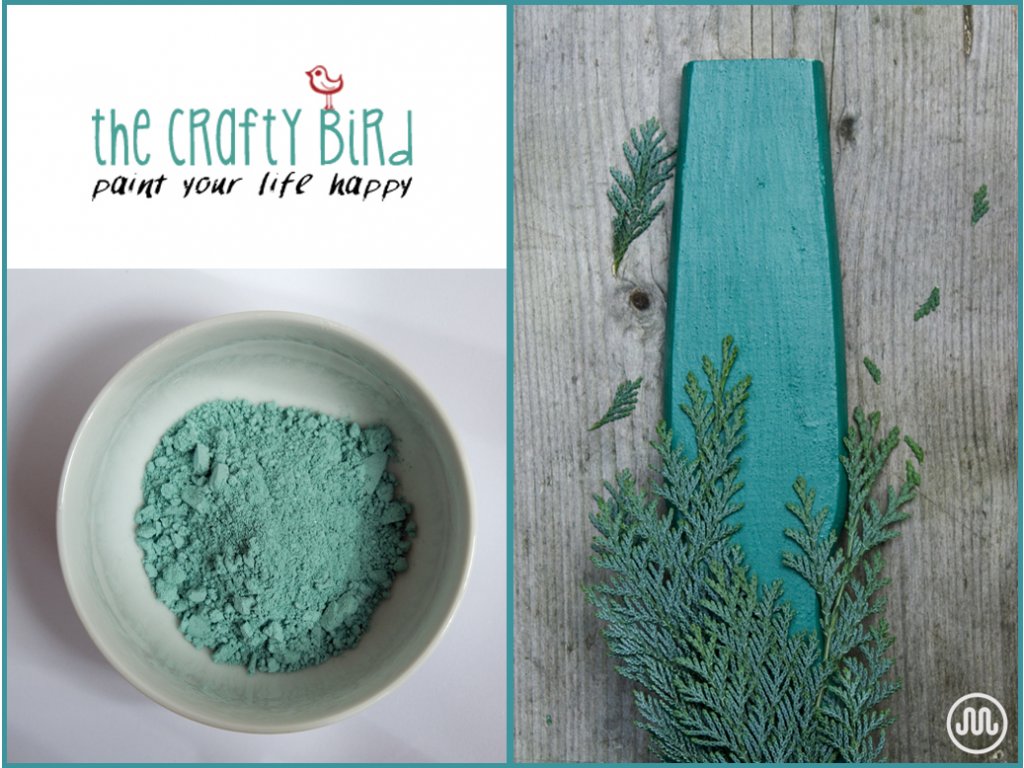 Mléčná barva zeleno-modrý odstín od The Crafty Bird Milk Paint. 230g balení na 1 litr barvy nebo 30g balení na 100 ml barvy.